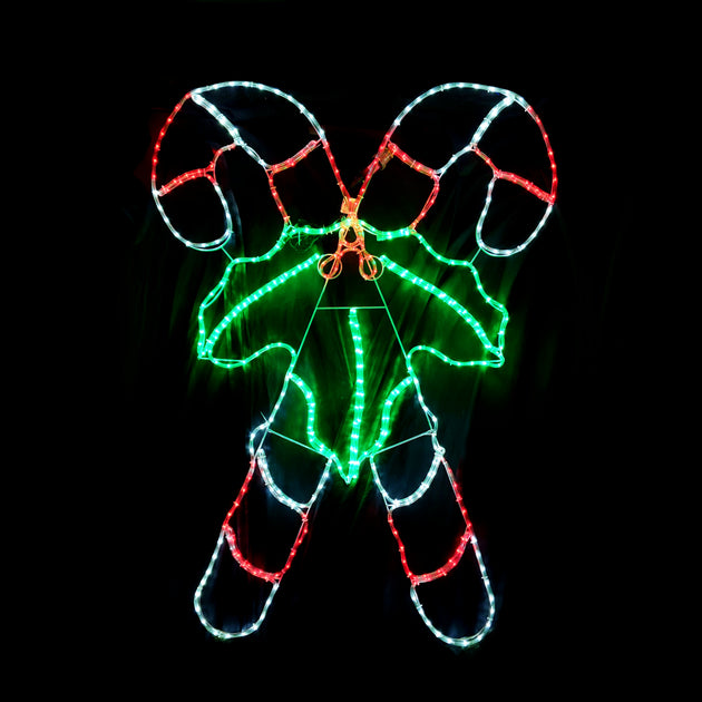 Christmas LED Motif Animated Candy Canes with Holly 160x120cm Outdoor Display