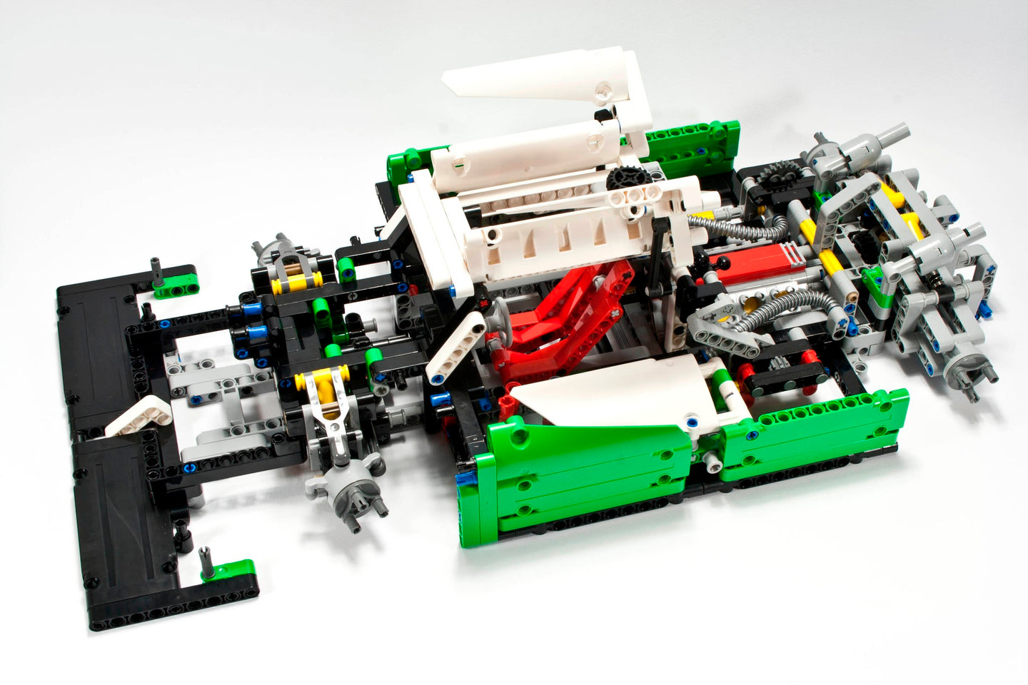 - Green, white and black colour scheme with racing decals