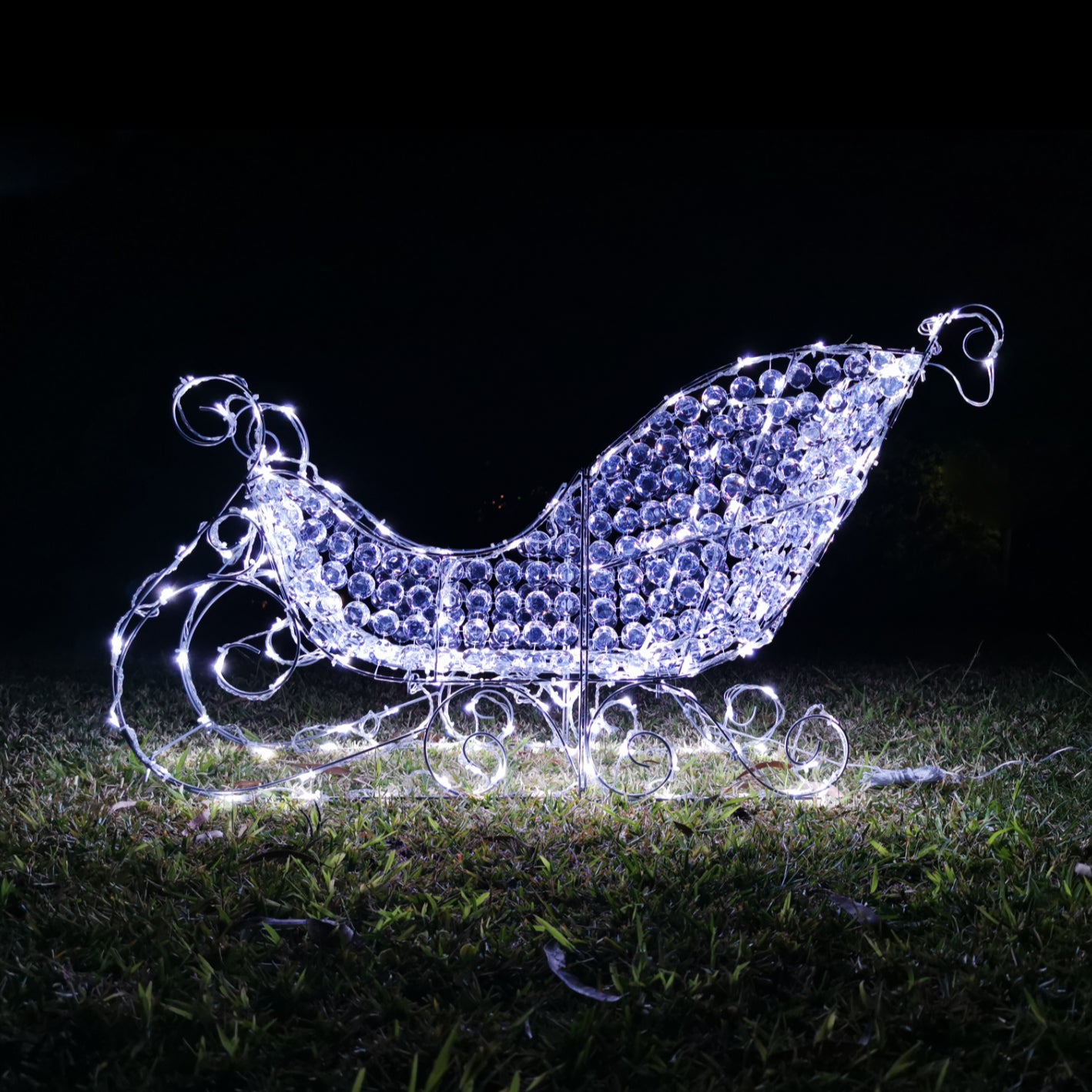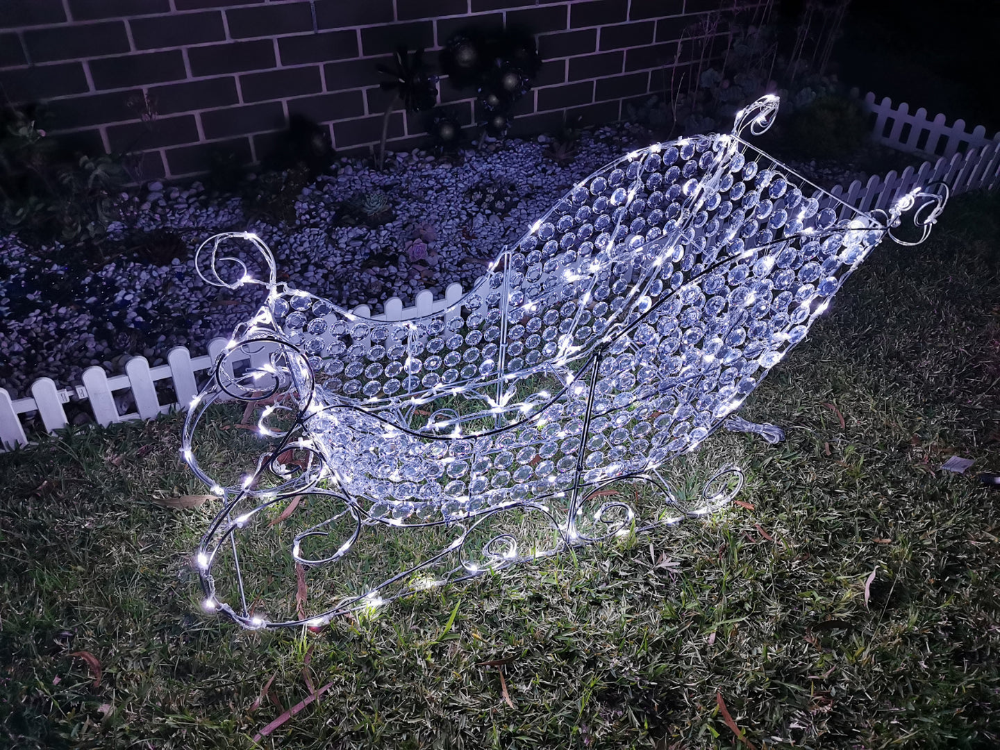 This exquisite looking 3D Santa sleigh is carefully crafted by hand from sewing each crystal together. A long string of LED lights are wrapped around the inside of the sleigh to produce this awesome looking glow. The lamp post is perfect decoration for your Christmas. Suitable for both indoor and outdoors.