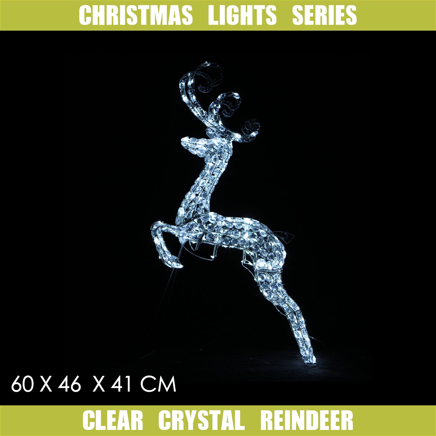Christmas Decoration 3D Crystal Leaping Galloping Reindeer 96x46x14cm White LED Display Indoor/Outdoor