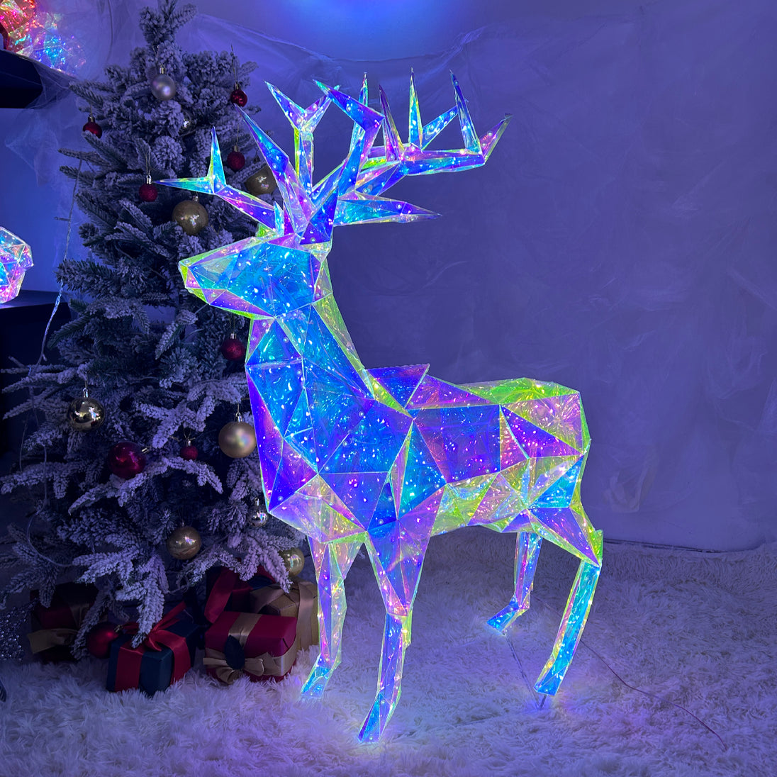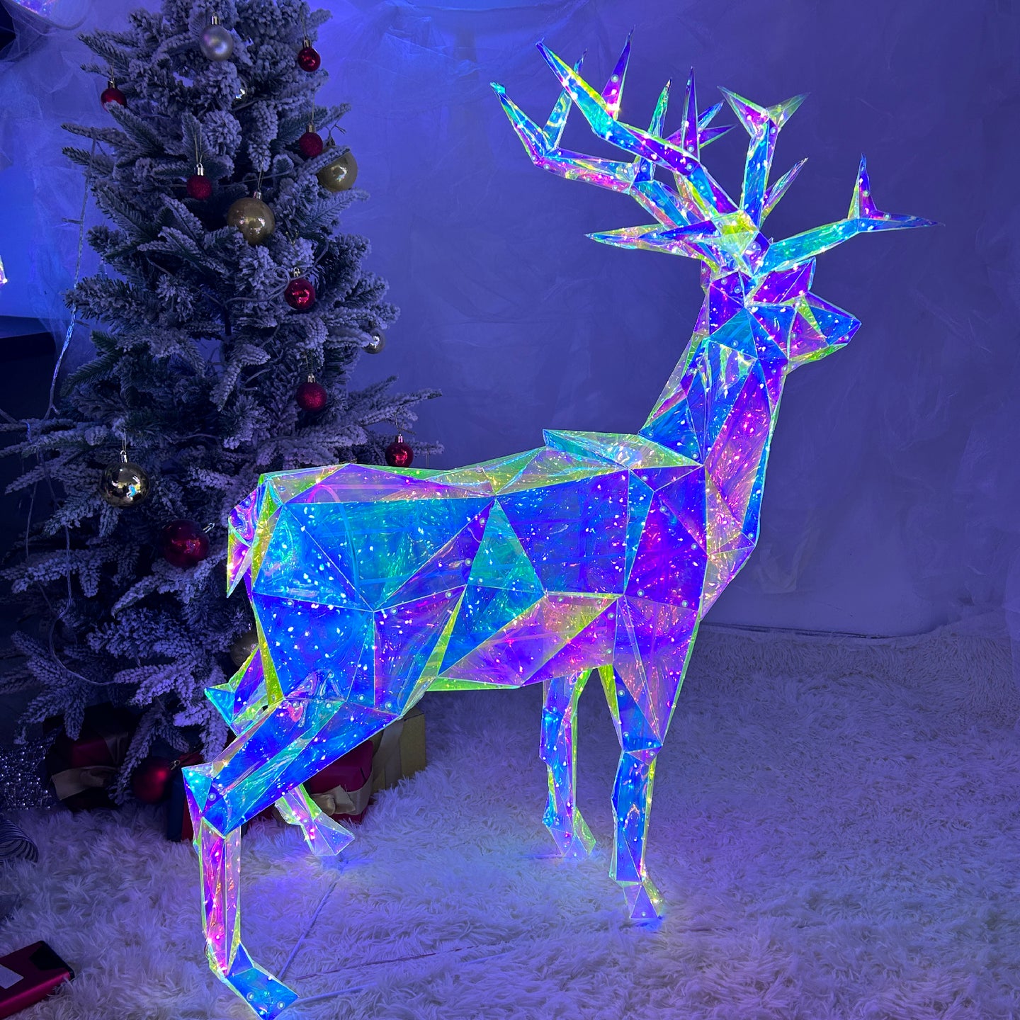 Christmas 3D Rainbow Film Erected Holographic Polygon 160cm Reindeer Doe LED Glimmering Cosmic Effect Outdoor