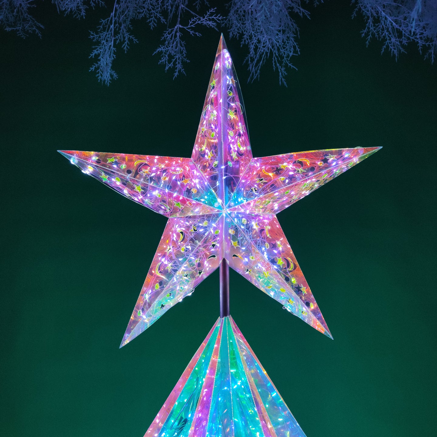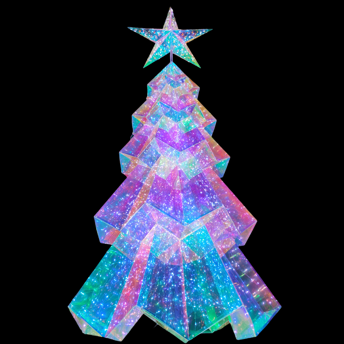 3D Rainbow Film Erected Holographic Polygon 180cm Christmas Tree With Star LED Glimmering Cosmic Effect Outdoor