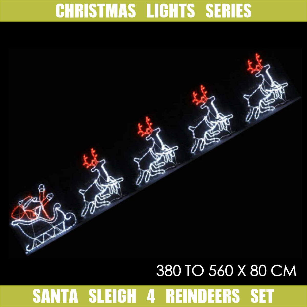 Christmas LED Motif Santa Riding Reindeers in Sleigh White Edition 560x80cm Indoor Outdoor Display Sign