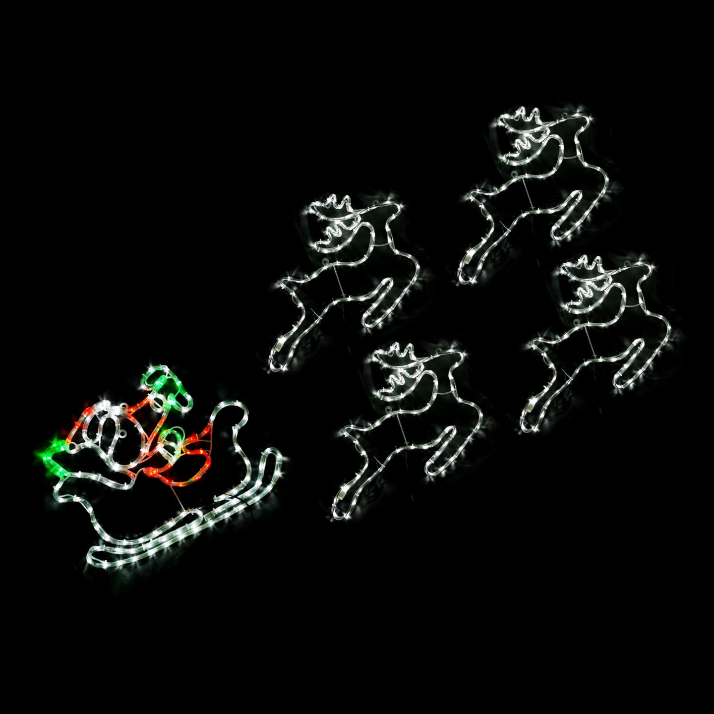 Decorate and celebrate this year's Christmas and New Year with this animated mini flying Santa with 4 reindeers display. Reindeers formation can be placed either 2x2 or 1x4.