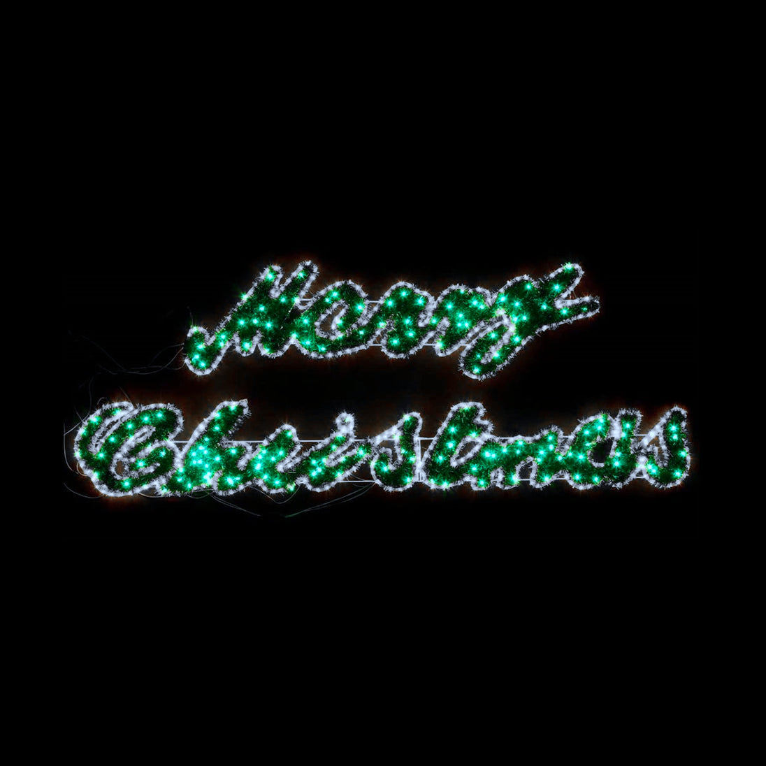 Christmas LED Motif Red/Green Tinsel Stuffed Merry Christmas White Outline 340x100cm