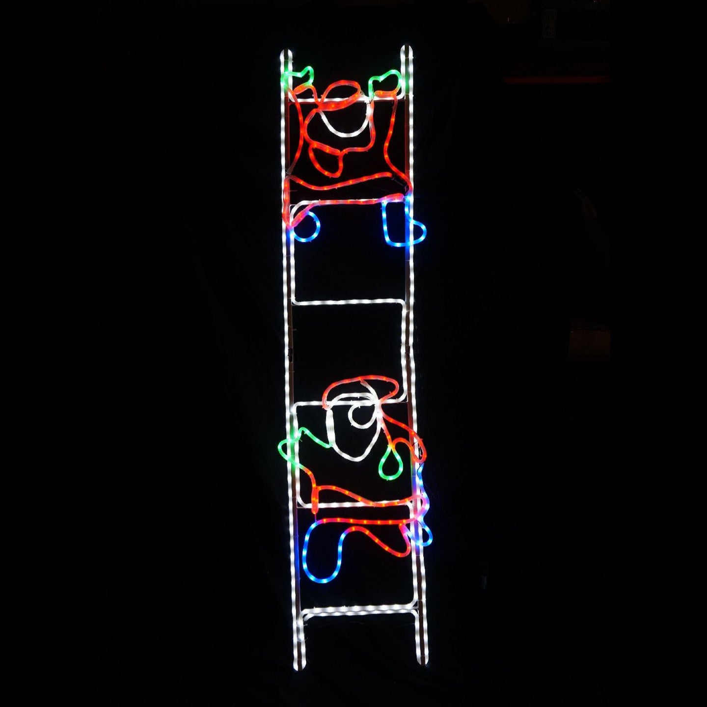 The Santa climbing ladder sign is animated with a function controller for twinkling of the Santa. The motif can be folded in half for easy storage. Full size is measured at 150x60cm.