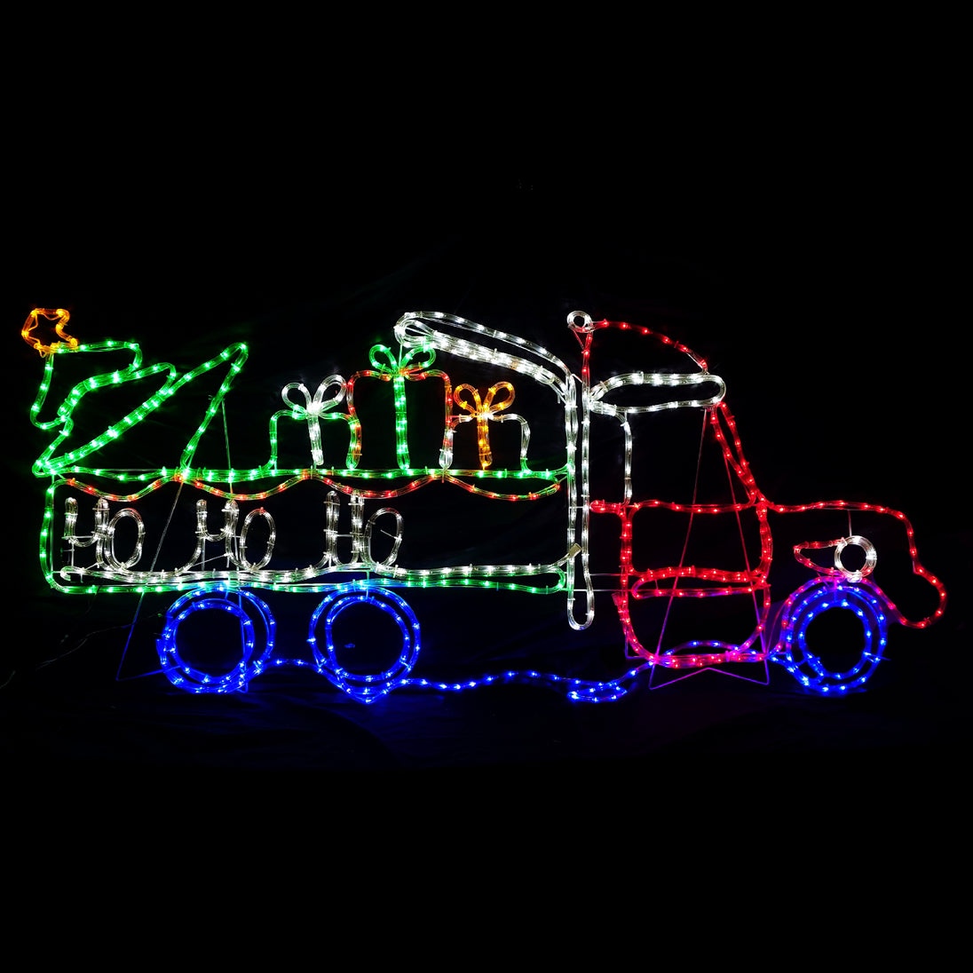 Decorate and celebrate this year's Christmas and New Year with this vibrant animated truck loaded with presents and flashing HOHOHO.