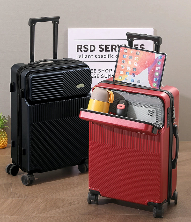 Introducing the 20" Slab Design Carry-On: Modern, Sleek, and Advanced! Experience the future of travel with our 20" Slab Design Carry-On. This unique and innovative luggage redefines convenience and style. Its reduced width allows you to navigate through traffic and tight spaces effortlessly, while the added USB port makes charging easier for your devices on the go without carrying the battery bank on yourself. The quick'n'easy front compartment is just icing on the cake to make accessing your essentials without tassels.