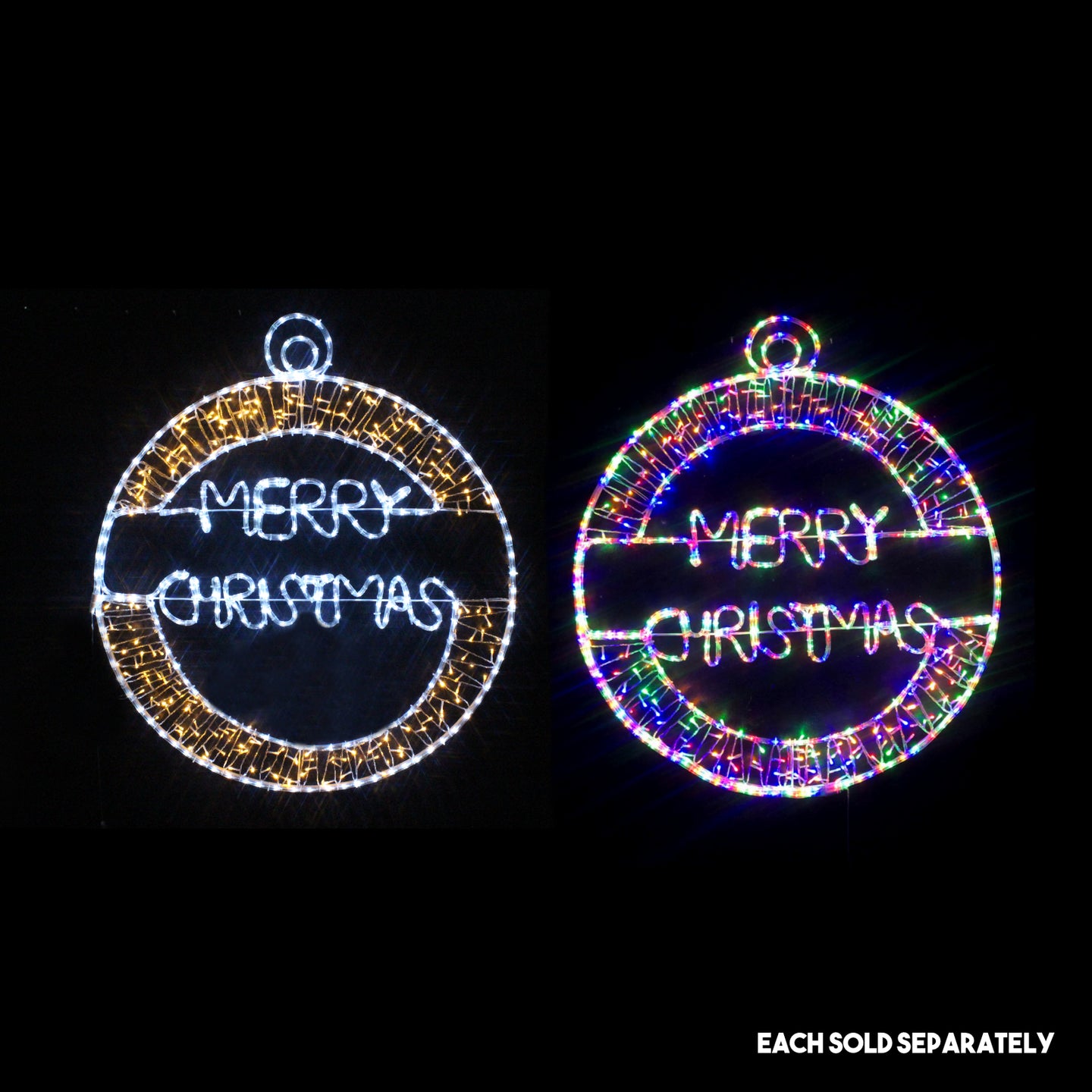 Decorate and celebrate this year's Christmas and New Year with this gorgeous Merry Christmas baubles motif sign. Available in multi and warm colour. The set also comes twinkling LEDs.