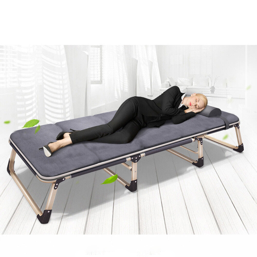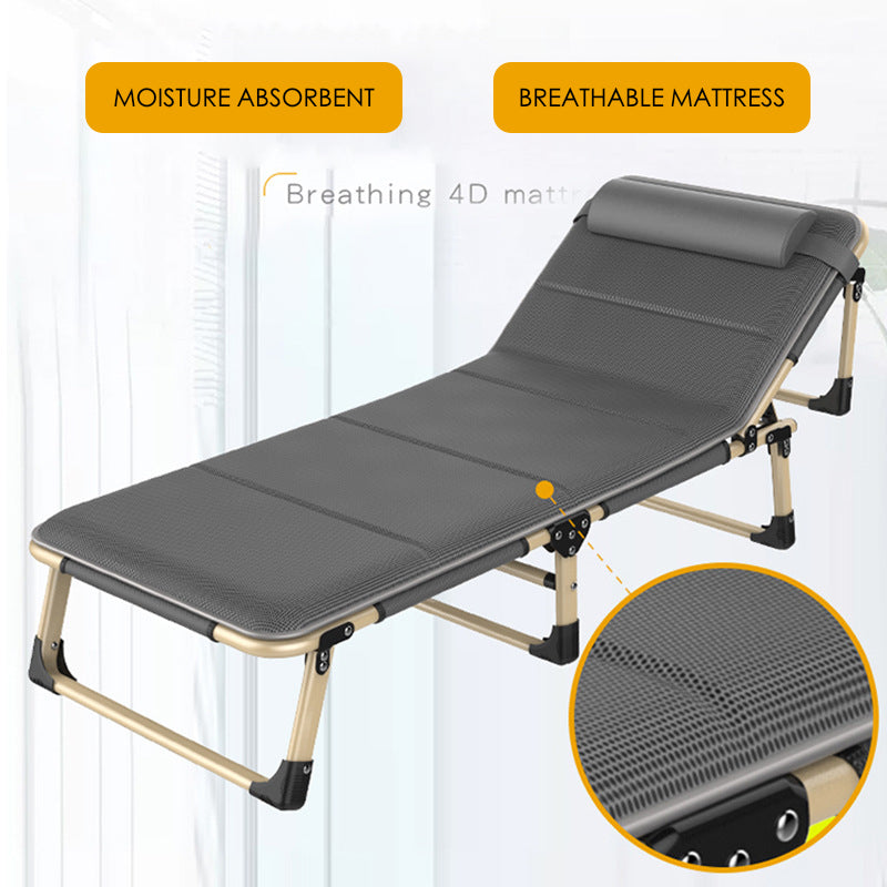 Portable Recliner Folding Bed Single Size Adjustable Head Rest With Sleeping Mat Indoor Camping Use
