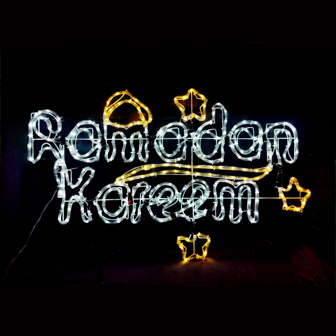 The Ramadan Kareem LED rope light sign is a nice set of decoration for the Islamic community. The display will become an instant favourite for your family, friends and guests. The light features twinkle LEDs.