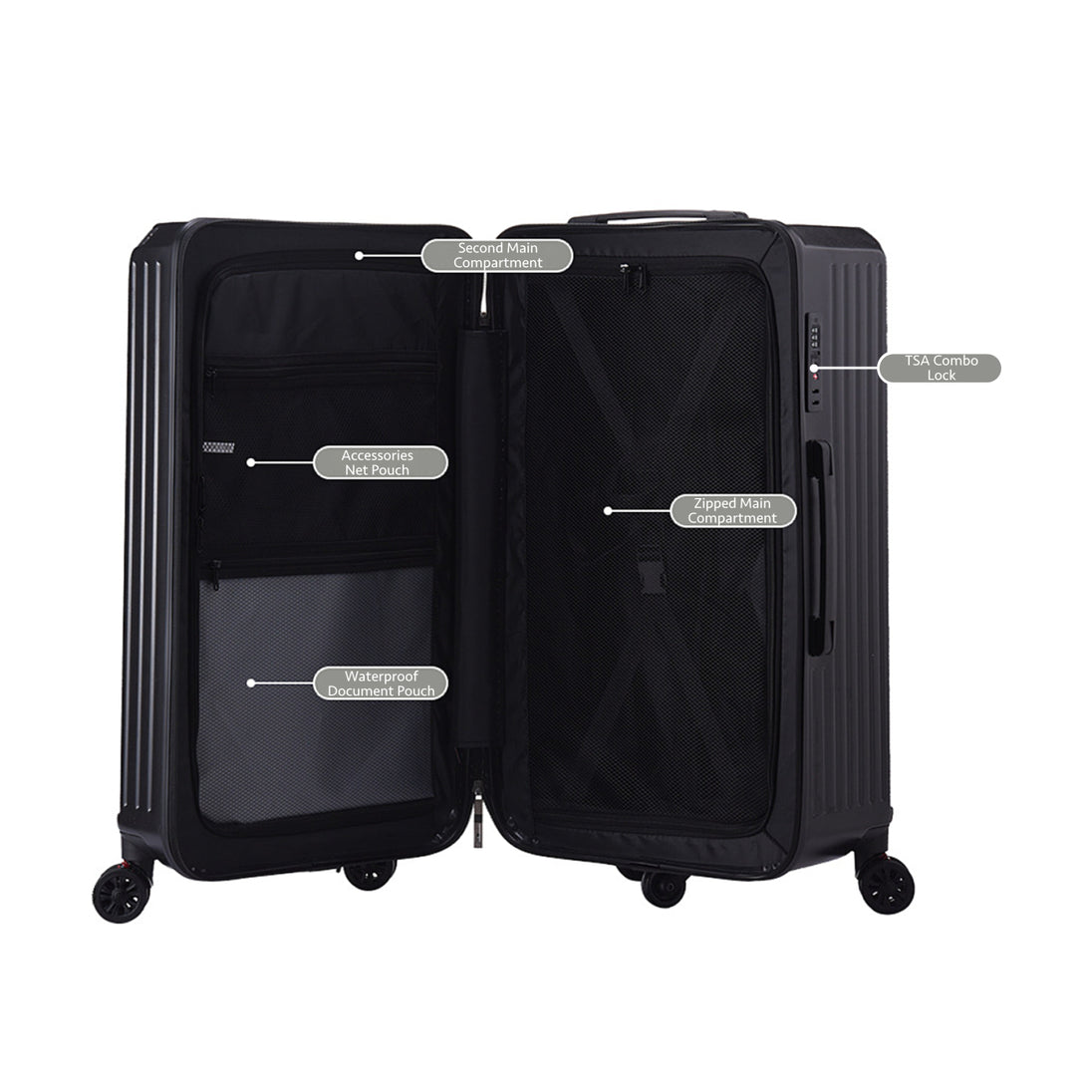 This unique slab design luggage is more modern, sleek and advanced. The reduced width of the suitcase will help travelers to go through traffic and places easier. The added thickness is what makes this luggage distinctive from the others. The added secondary compartment is icing on the cake. The slab case is super durable and protects your belongs safely and making your journey more comfortable.