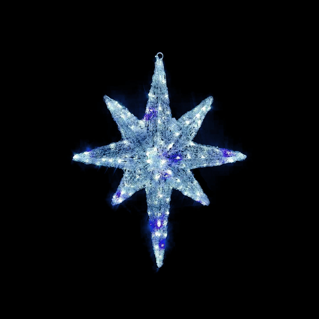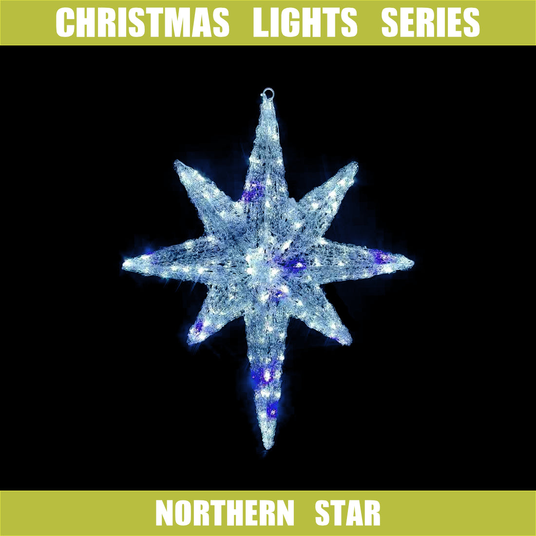 Unique 3D northern star made in spun acrylic. Beautifully illuminated with twinkling dual colour LEDs.
