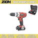 ZION 18V Cordless Drill BMC Pack Includes 2x2AH Li-ion Batteries Charger Bits Accessories