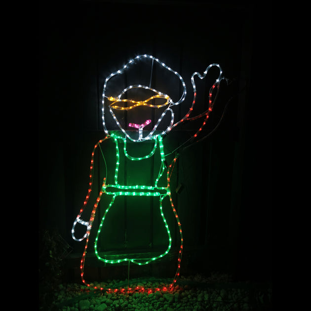 Clearance Christmas LED Motif Animated Waving Mrs Claus 140cm Outdoor Lighting Silhouette