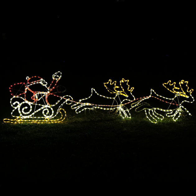 Clearance Christmas LED Animated Motif Santa Riding Reindeers in Sleigh 210x70cm Outdoor