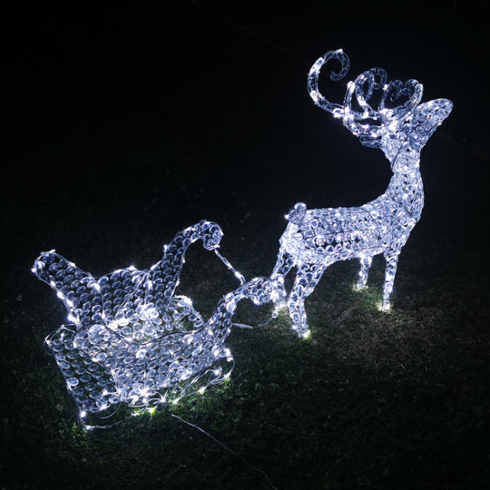Christmas Decoration 3D Crystal Beads Reindeer Sleigh Set 99cm LED Display Indoor/Outdoor