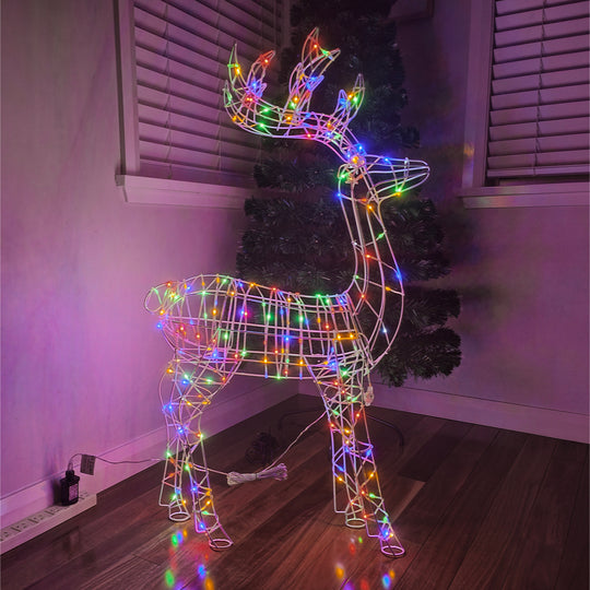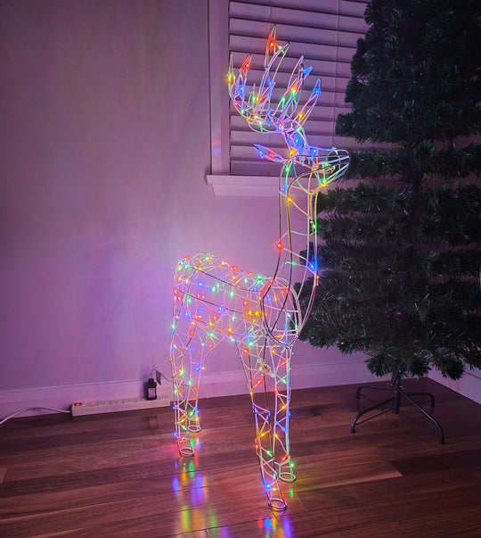 Christmas Decoration 3D Frame Standing Buck Reindeer 114cm Multi LED Indoor Outdoor
