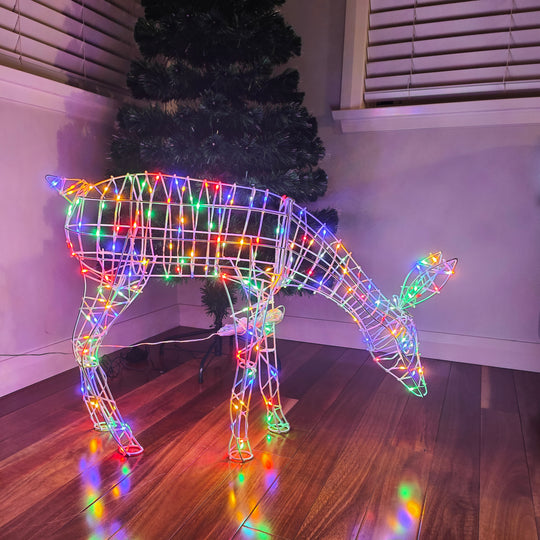 Christmas Decoration 3D Frame Doe Reindeer Eating 85cm Multi LED Indoor Outdoor