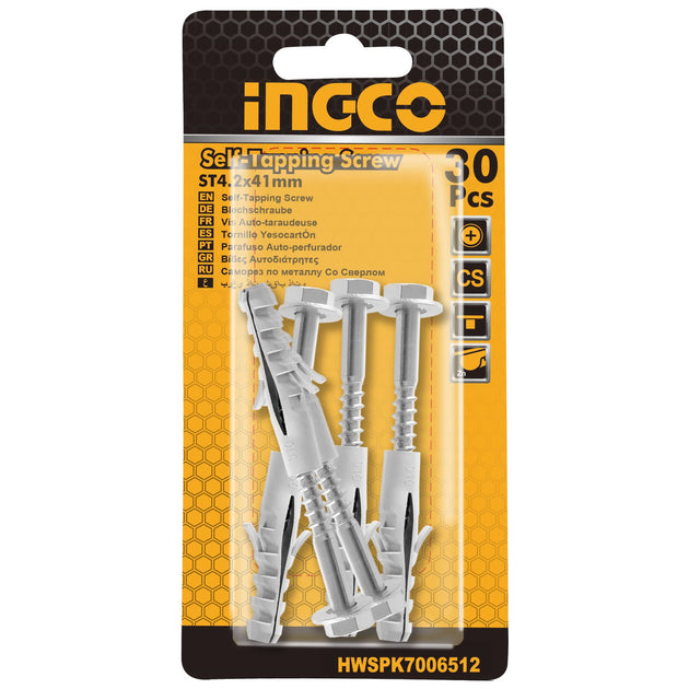 INGCO 5 Pcs Set Wall Plug 14G Hex Head 65mm Screw