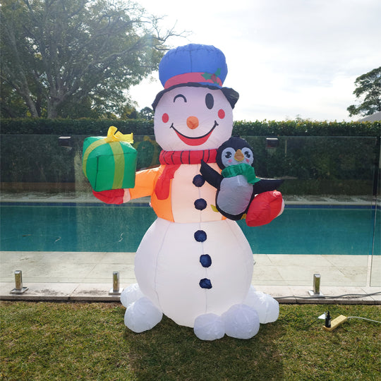 Christmas Decoration Inflatable 180cm Snowman Holding Penguin & Giftbox