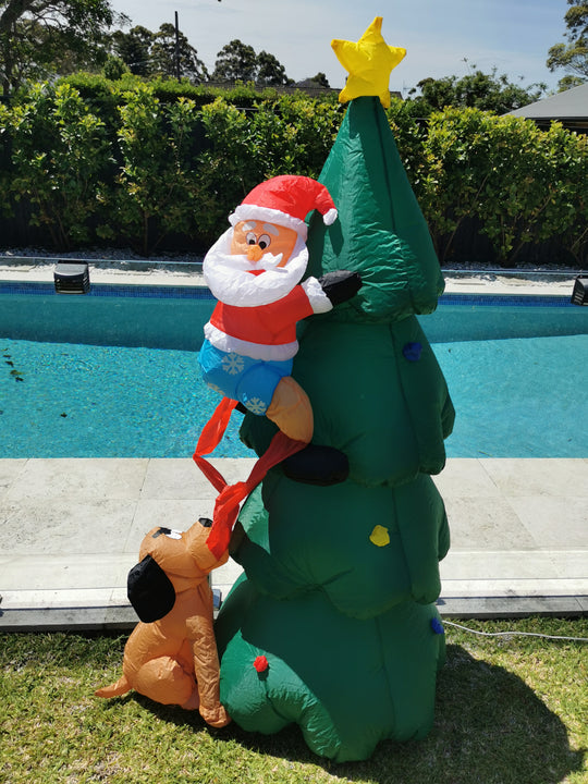 Christmas Decoration Inflatable 180cm Tall Christmas Tree Santa Chased by Dog LED Lit