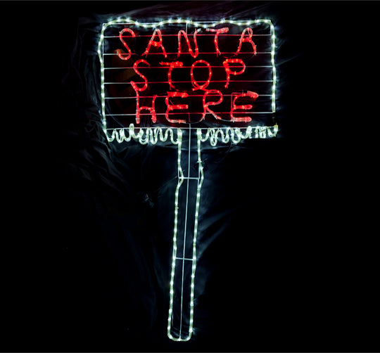 Christmas LED Motif Animated Santa Stop Here Sign 150x76cm Outdoor Display