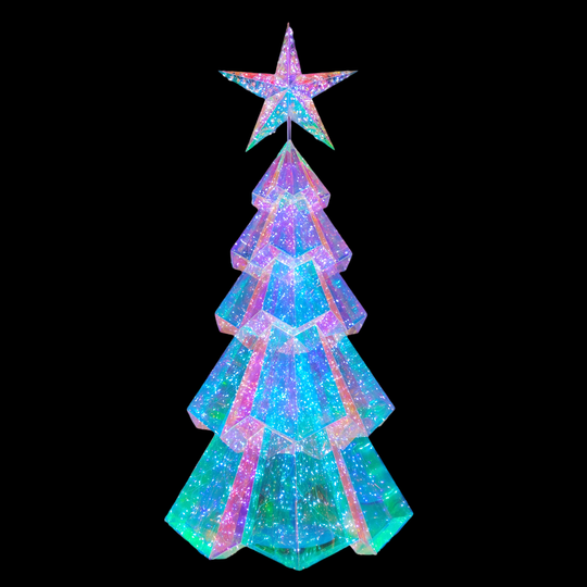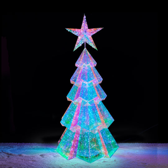 3D Rainbow Film Erected Holographic Polygon 180cm Christmas Tree With Star LED Glimmering Cosmic Effect Outdoor