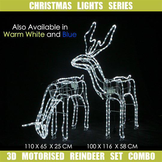 3D LED Christmas Motif Motorised Buck & Doe Reindeers Set Combo