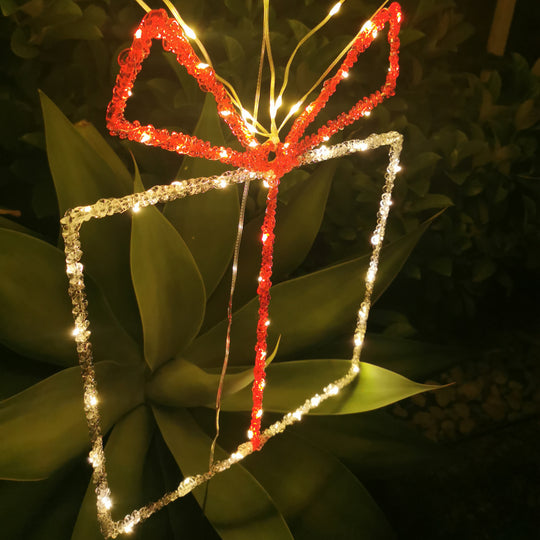 Christmas LED Motif Spun Acrylic Gift Box Parachute 92x117cm LED Lit Animated Outdoor Decoration