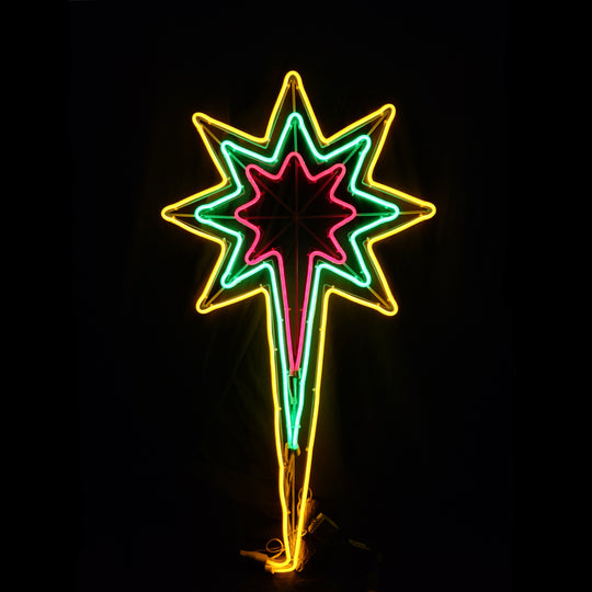 Sale     Christmas LED Neon Motif Animated 3 Layer Nativity Northern Star 121x71cm Outdoor Display Decorate and celebrate this year's Christmas and New Year with this vibrant red, green and yellow outlined nativity star. Sitting at 121cm tall and 71cm wide, with vibrant neon light, make your Christmas and New Year...Sale price $99.00Regular price $129.00Sale price $99.00Regular price $129.00