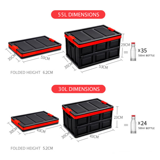 Features Sorted storage Easy to use collapsible storage bins Huge space saving when not in use Light weight and durable Stackable in both folded and unfolded forms Available in 2 sizes 30L and 55L Lockable lid Optional...Regular price From $17.95Regular price From $17.95