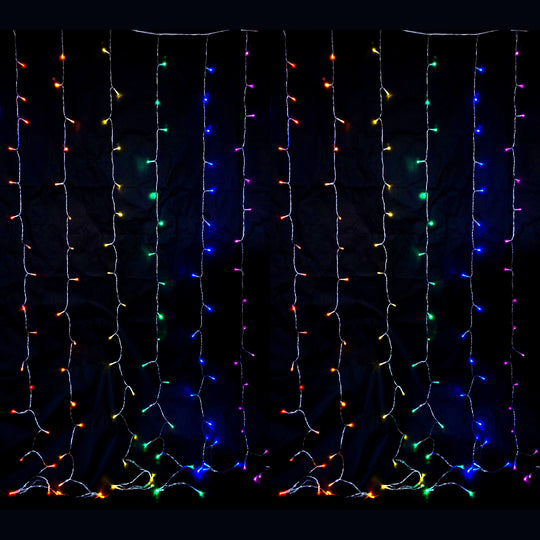 Christmas 360 LED Rainbow Colour Curtain Lights 8 Functions 2.5m Drop Indoor/Outdoor