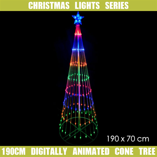 Christmas 190cm Cone Tree 198 LED Digitally Animated 24 Functions Multi Colour