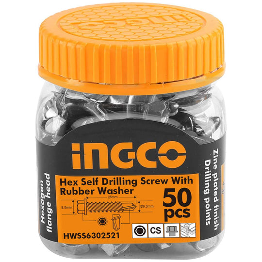 INGCO 50 Pcs 14G Hex Bolt 25mm Self Drilling Screw Zinc