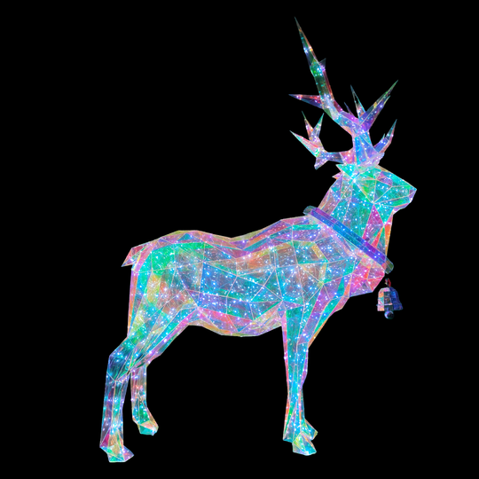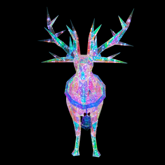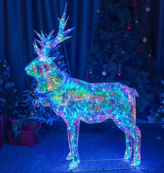 Christmas 3D Rainbow Film Erected Holographic Polygon Reindeer Buck 160cm LED Glimmering Cosmic Effect Outdoor