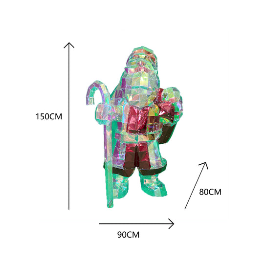 Christmas 3D Rainbow Film Erected Holographic Polygon Father Santa Claus 160cm LED Glimmering Cosmic Effect Outdoor