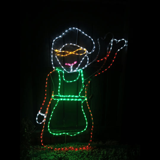 Clearance Christmas LED Motif Animated Waving Mrs Claus 140cm Outdoor Lighting Silhouette